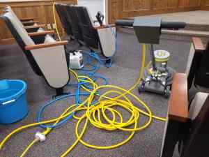 The Hot Water Extractor blasts the carpet with clean water (heated to 210ยฐF), and immediately sucks it back out. This is the final part of cleaning the carpet, removing all of the loosened dirt and debris as it washes.